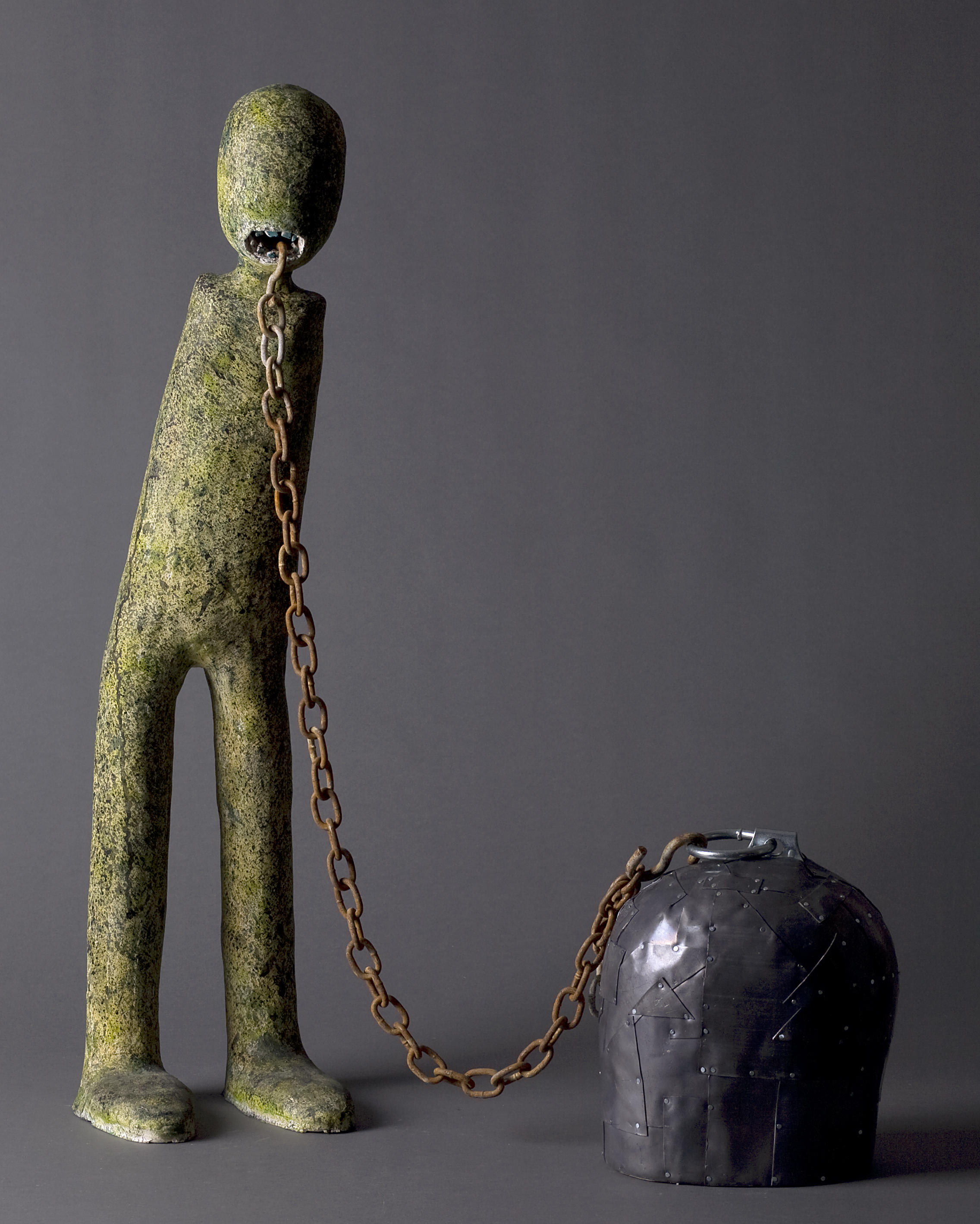 Tongue Tied Published on August 6, 2013 in GalleryFull resolution (2272 × 2838) ← Previous Next → 2012, 31 x 7 x 36″, clay, paint, steel, lead